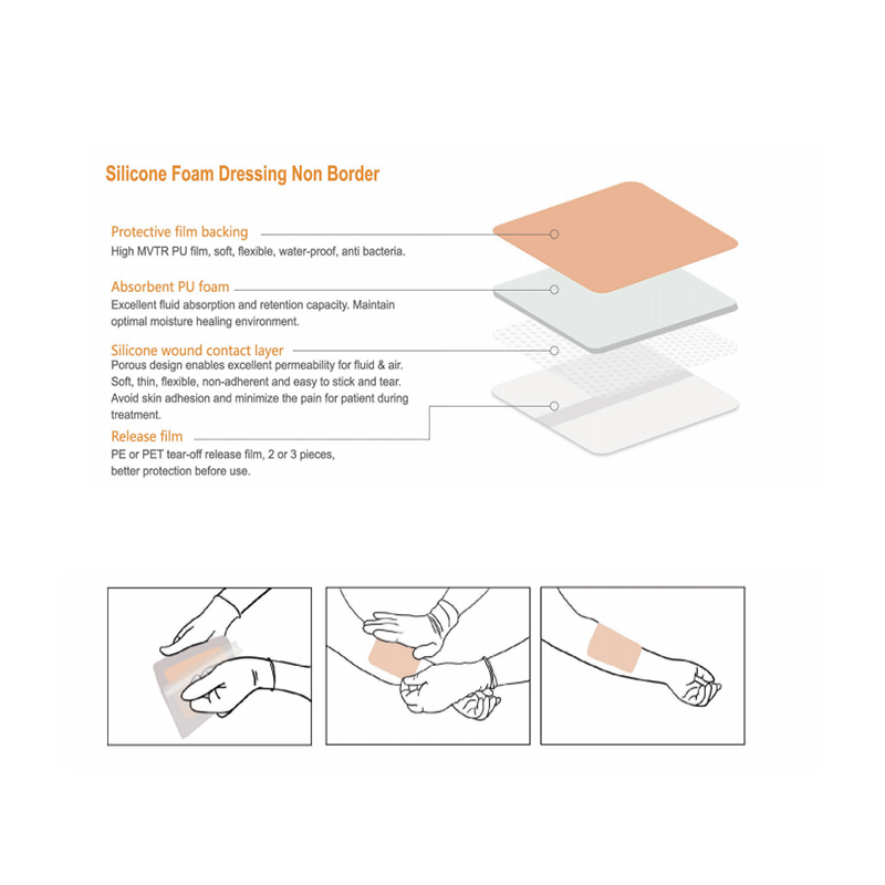 A nem szegélyezett szilikonhab kötszer egy öntapadó kötszer, amely védőfólia hátlapból, nedvszívó PU habból, szilikon sebkontaktrétegből és elválasztó fóliából áll. Főleg krónikus és akut, közepesen és erősen váladékozó sebekre használják, valamint nyomási fekély megelőzésére és kezelésére.