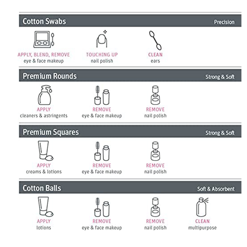 Ideális smink és körömlakk eltávolítására, tisztítószerek, összehúzó szerek és lotionok felvitelére.