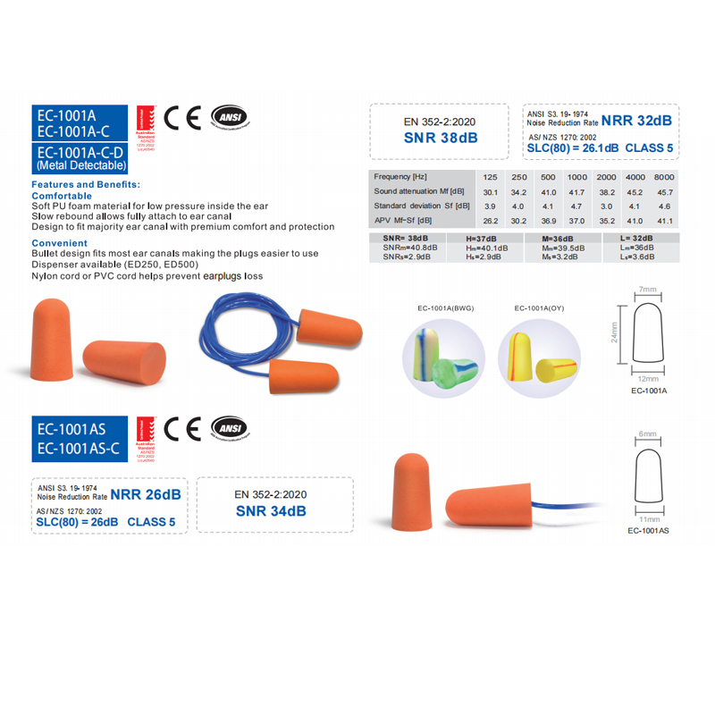 A legtöbb hallójáratnak megfelelő golyós kialakítás megkönnyíti a dugók használatát. Elérhető adagoló (ED250, ED500) A nylon kábel vagy a PVC kábel segít megelőzni a füldugó elvesztését