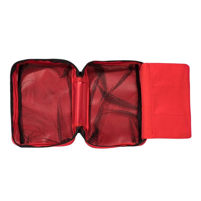 A sokoldalú elsősegélytáska hálós zsebekkel, valamint egy kihajtható résszel rendelkezik, hogy elegendő tárolást biztosítson.