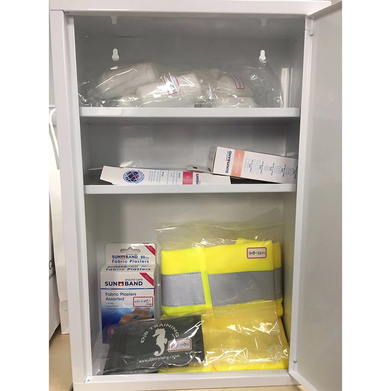 Az elsősegélynyújtó fémszekrény üresen, vagy az Ön által kiválasztott elsősegélynyújtó kellékekkel megtöltve értékesíthető.