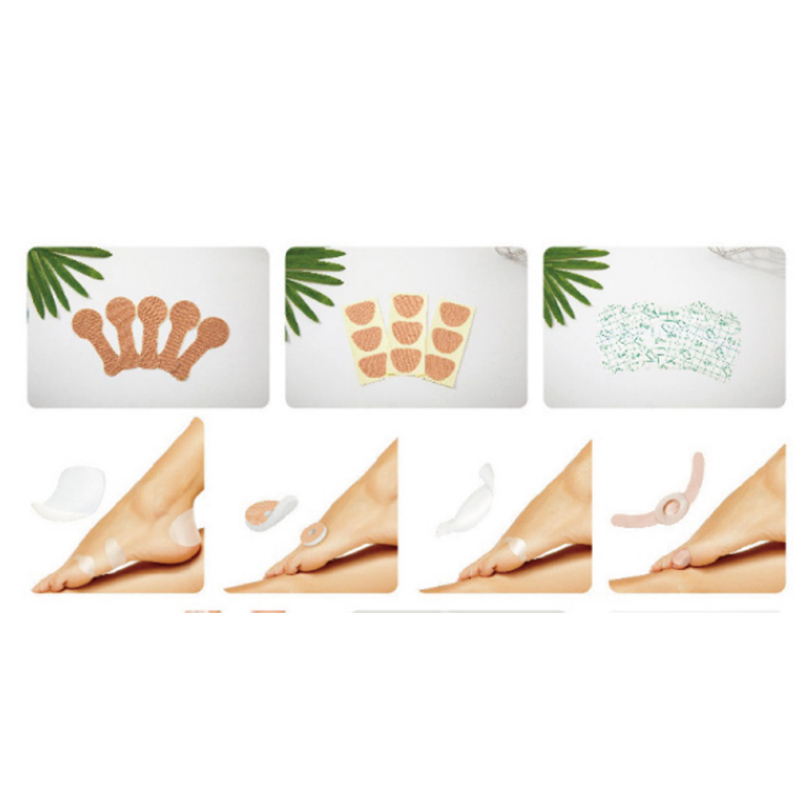 A lábbeli viselése által okozott kellemetlenségekre használják. Megakadályozhatja a láb sérülését, és cipőt viselhet a jobb kényelem érdekében. Használható a kézre és a csuklóra is, mint kiegészítő paszta az életben és a munkában, hogy a felhasználók kényelmét és kényelmét nyújtsa. PE, hab, flanellett, PU és egyéb anyagok alacsony érzékenységű orvosi forró olvadék ragasztóval, akrilsav ragasztóval, szilícium gél, hidrokolloid stb. Különféle formák testreszabhatók.