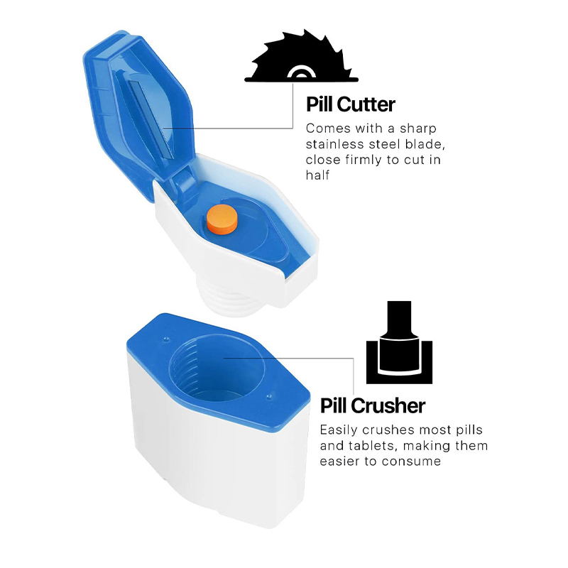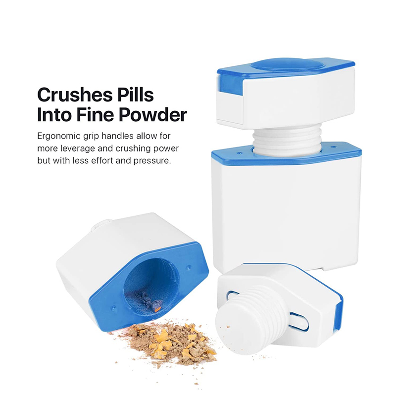 A pirulákat finom porrá zúzza, rozsdamentes acél pengét használ a tabletták megfelelő felosztására, és előre tárolja a vágott és vágatlan kapleteket.