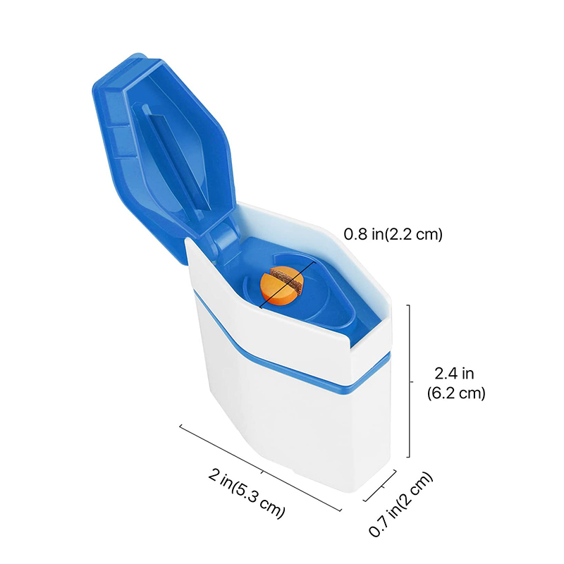 Ennek a 3 az 1-ben pirula-osztónak a vágási helyzetét 0,7-2 (cm)/0,27-0,79 (in) közötti szabványos pirulamérethez tervezték.