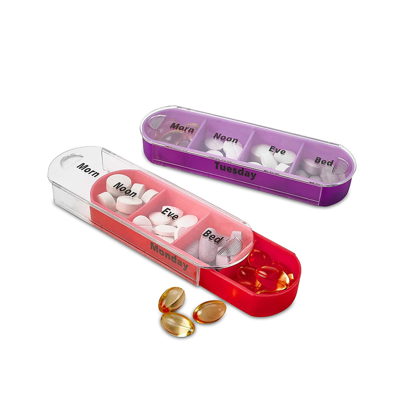 Mindegyik tálca egy hétköznapra készült, és négy rekesze van reggel, délben, este és éjszaka címkével.