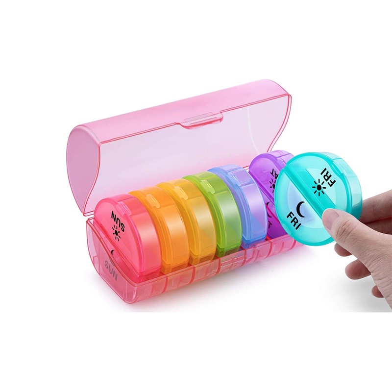 A 7 színű tablettát rendező dobozok jobban nyomon követik a gyógyszert naponta kétszer délelőtt és délután.
