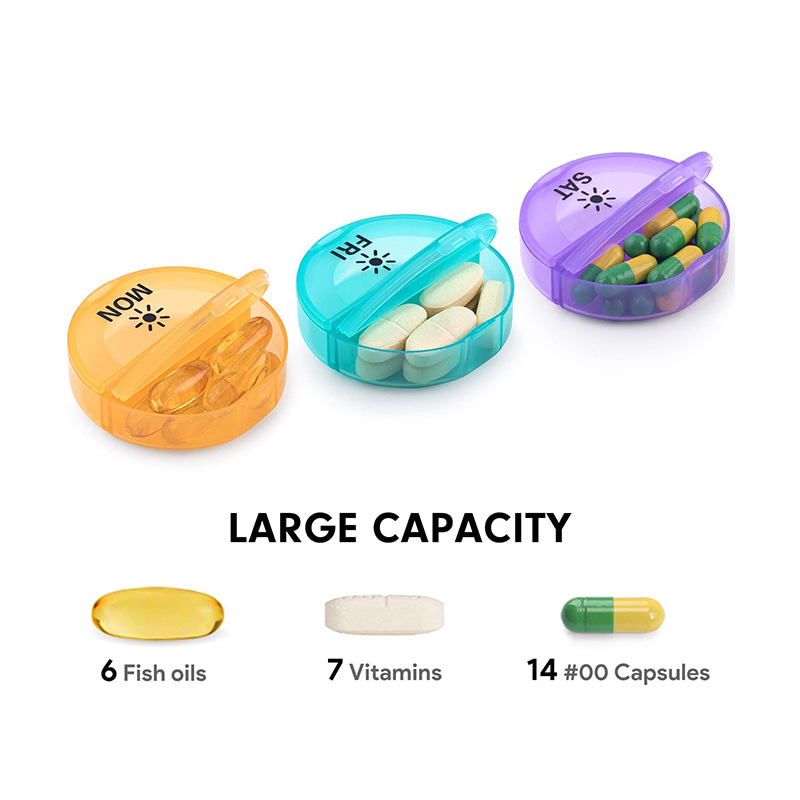 A 7 különálló, 7 színű napi doboz lehetővé teszi, hogy kicsússzon egy vagy néhány napos gyógyszert, amelyet be kell vennie, ha kint van.