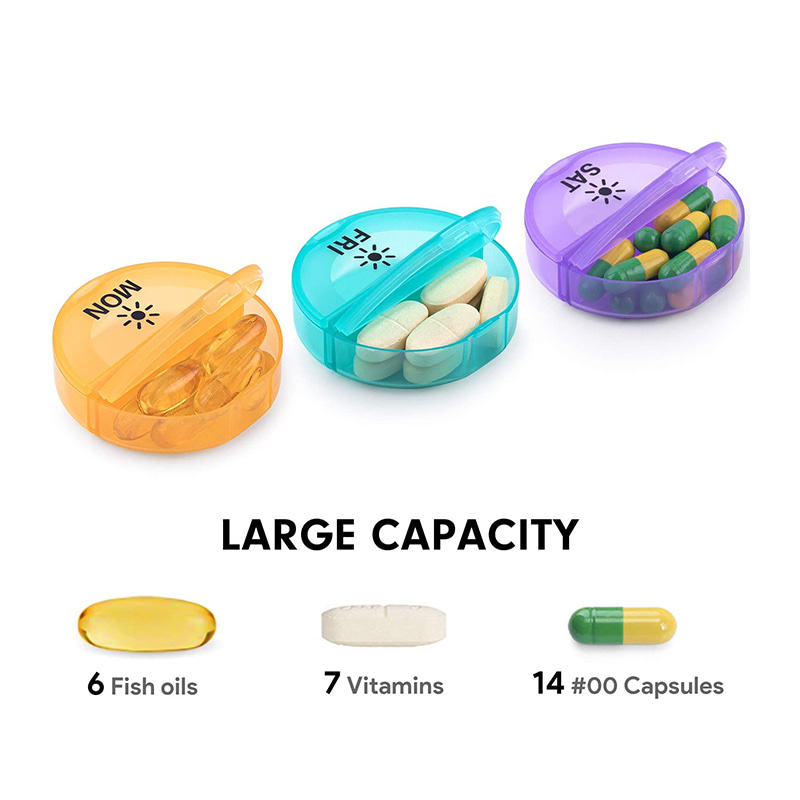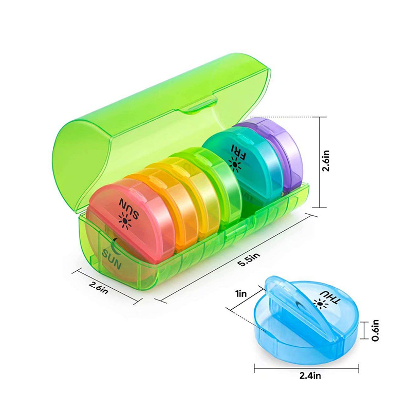 A 7 különálló, 7 színű napi doboz lehetővé teszi, hogy kicsússzon egy vagy néhány napos gyógyszert, amelyet be kell vennie, ha kint van.