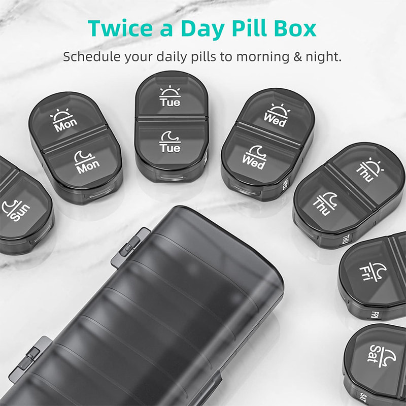 Minden rekeszben van délelőtt/délelőtt reggeli éjszakai rész. Ez a piruladoboz segít nyomon követni a tablettákat és a táplálékkiegészítőket.