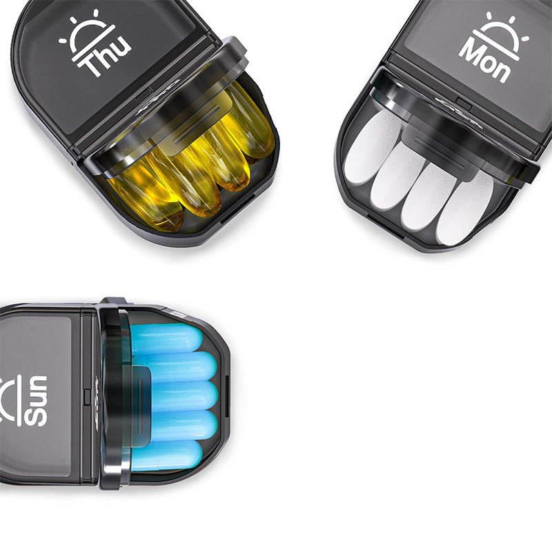 Ez a személyes tabletta-rendező BPA-mentes élelmiszer-minőségű műanyagból készült.