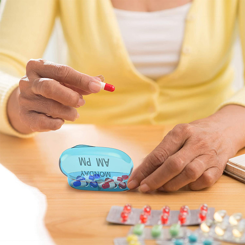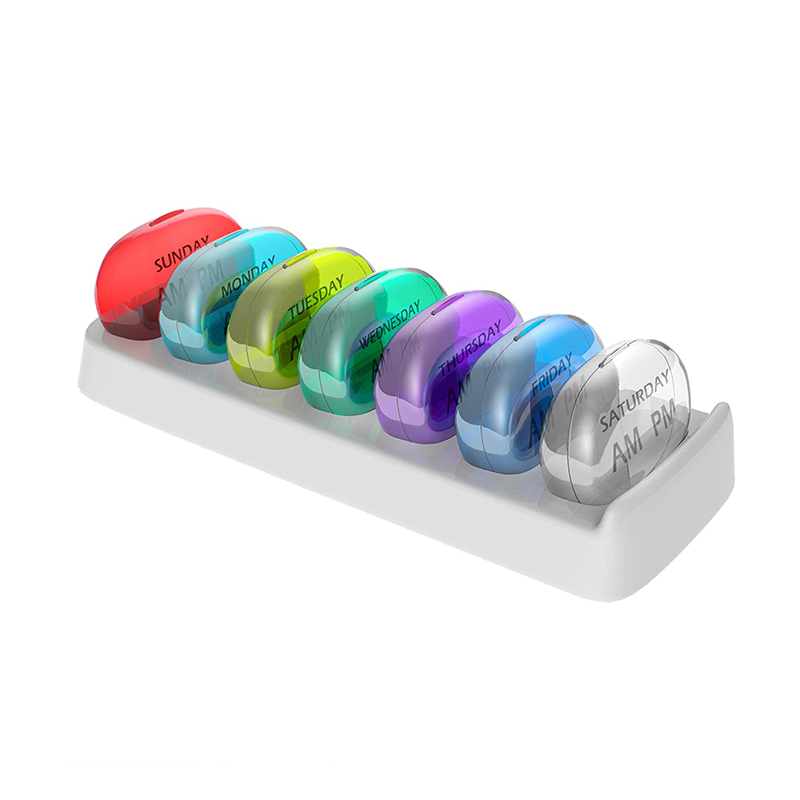 Minden rekesz más-más áttetsző színű, amivel a hét minden napján különbséget lehet tenni.