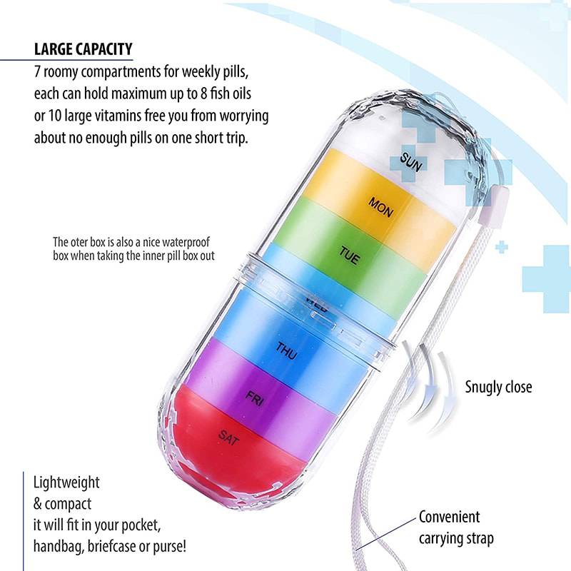 Kis, könnyű és kétrétegű, aranyos vitaminrendező, amit mindenhol kéznél tarthatsz, és nem kell aggódnod, ha a 7 napos tablettatartó repülés közben kinyílik és kiömlik.