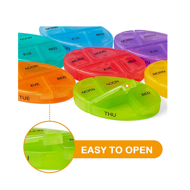 Minden napi tabletta-rendező lepattintható fedelekkel rendelkezik, hogy ellenálljon a felpattanásnak, még akkor is, ha leejtik. Hatékony a tabletta kiömlésének megelőzésére.