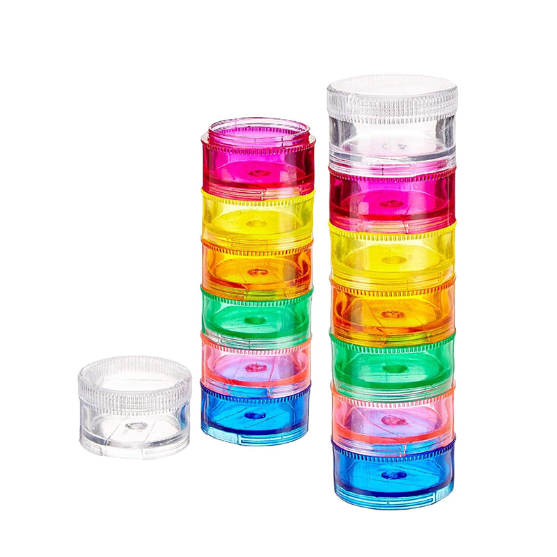 Az egymásra rakható tablettatartályok számának rugalmassága és a választható különböző méretek miatt az egymásra rakható tablettatartályok kényelmes kiegészítői az utazótáskájának.