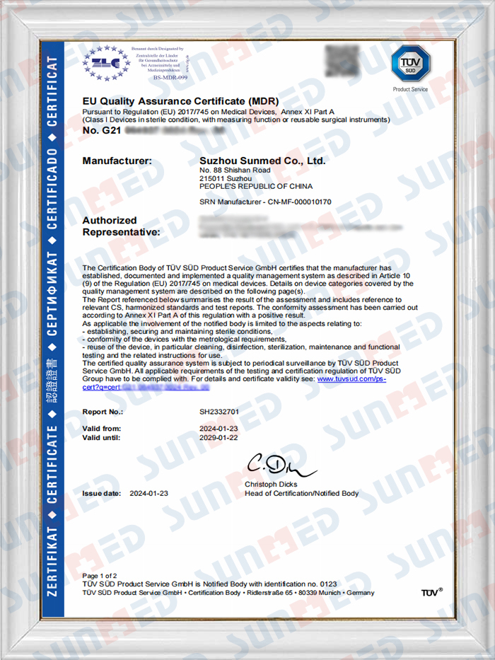 A Sunmed több száz alkalmazottból álló professzionális minőségellenőrző csapattal büszkélkedhet, akik szigorúan betartják az ellenőrzési eljárásokat, hogy biztosítsák az ISO13485:2016 szabványoknak való megfelelést. Termékeink többsége CE tanúsítvánnyal rendelkezik, és suzhoui gyáraink megfelelnek az FDA követelményeinek.