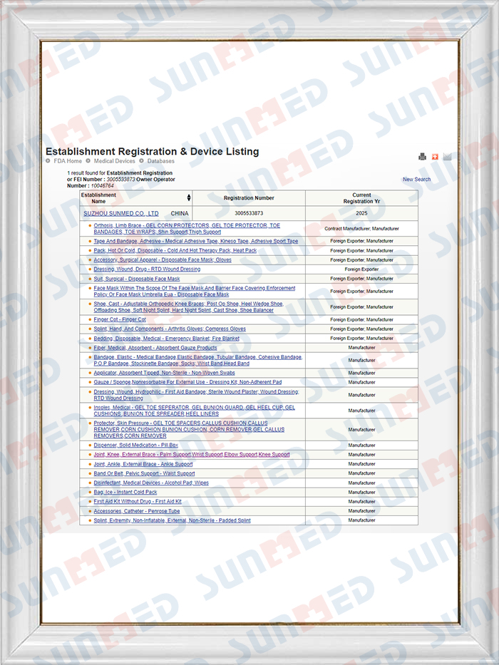 A Suzhou Sunmed Co., Ltd. az elsősegély-, orvosi és egészségügyi termékek professzionális vezető gyártója és exportőre Kínában. Több gyártóbázist működtetünk Jiangsuban, Zhejiangban és Anhui tartományban.