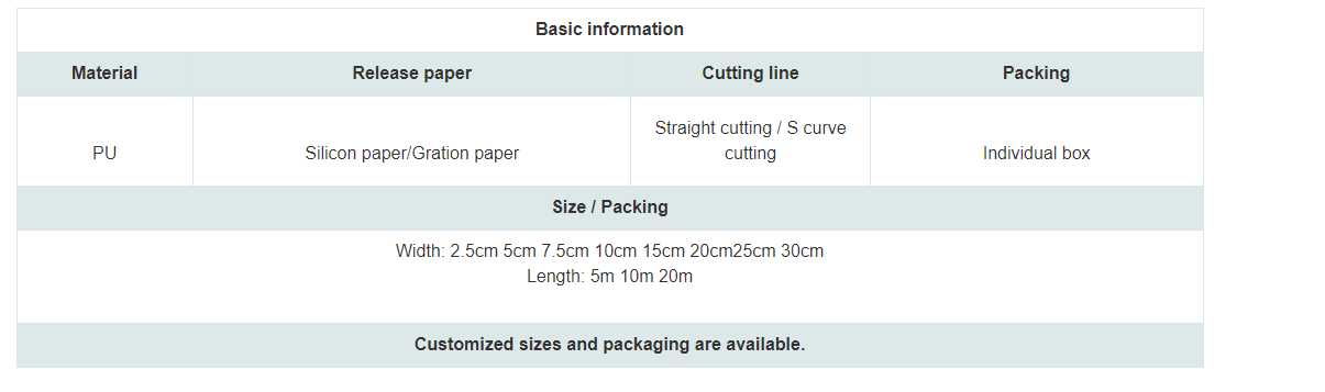 Az átlátszó PU kötözőtekercs poliuretán fimből készült, bevonattal